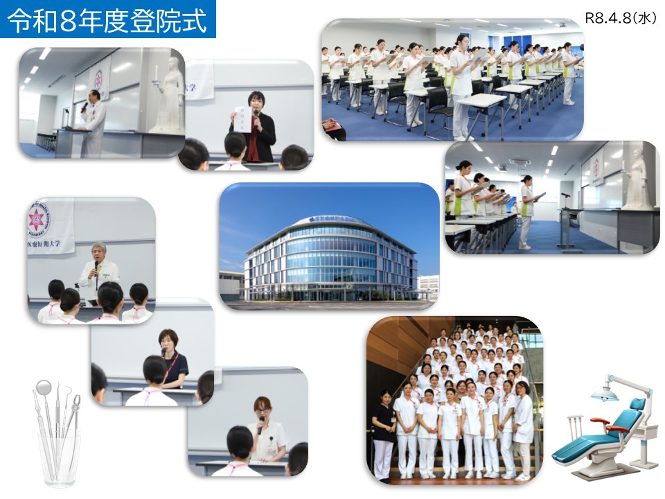 令和8年度登院式を行いました。 在学生 2026.04.08 令和8年度登院式を本日4月8日(水)に行いました。歯科衛生学科3年生57名は、登院に向けて「誓詞」を全員で読み上げ、臨床実習班ごとに名前を呼ばれると、緊張した面持ちで一人ひとり返事をしていました。早速、本日午後から医科歯科総合病院や介護保険施設、開業歯科医院等での臨床・臨地実習がスタートします。これまで講義で学んだ知識と基礎実習で身に付けた技術を最大限に活かして頑張ってください!